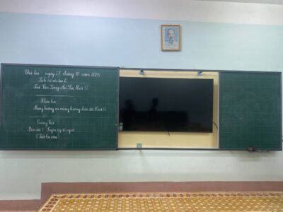 🎒 Trong lớp học, Thuần Tâm trang bị màn hình hiển thị hiện đại kết hợp bảng từ xanh, giúp giờ học thêm sinh động và trực quan hơn.