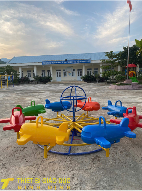 Vòng quay máy bay: gồm nhiều ghế ngồi hình máy bay đầy màu sắc, giúp tăng khả năng tương tác và phát triển vận động nhóm.